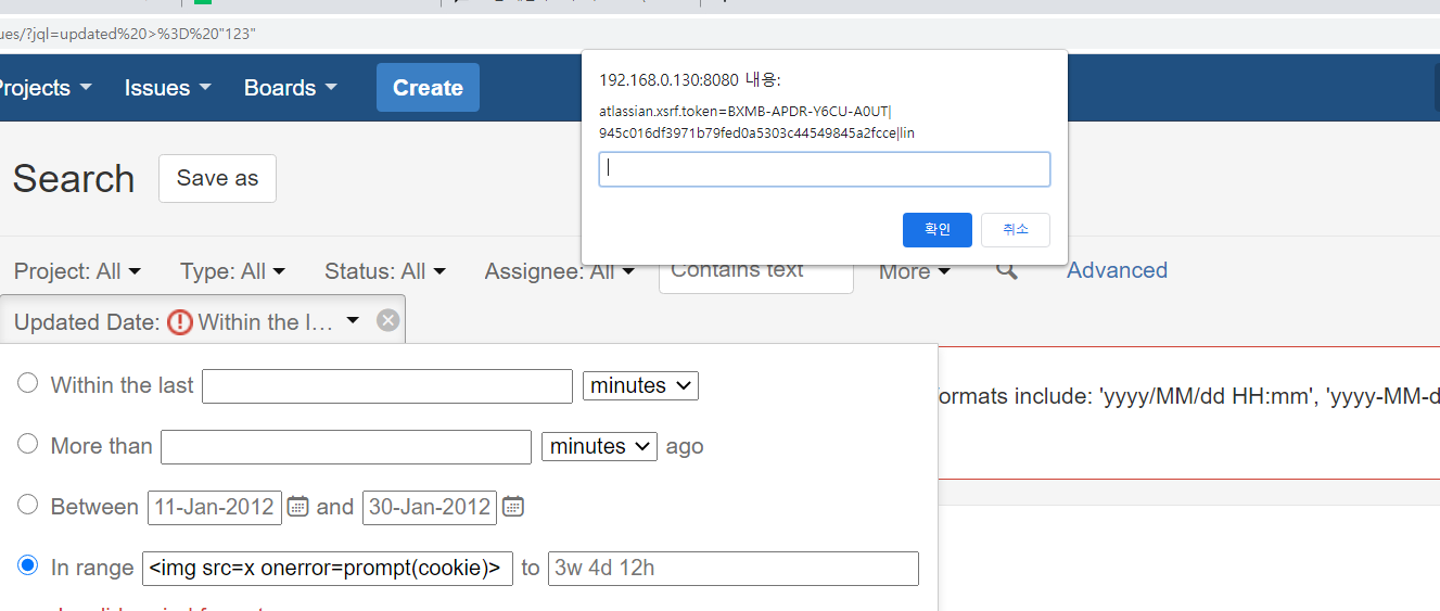 CVE-2018-5230μ λλ²λ§μ λΆμ¬λ°μ μ·¨μ½μ μΌλ‘ Jira Softwareμμ 리μ€νΈμ λ Issue λ€μ 리μ€νΈλ€μ κ²μνμ¬ λ³Ό μ μλ κΈ°λ₯μ΄ μ‘΄μ¬ν©λλ€. κ·Έμ€ κ²μλ μ§λ‘ νν°λ₯Ό κ±Έ μ μλ λ³μμ μ λ ₯κ° κ²μ¦μ΄ λ―Έν‘ν λΆλΆμ΄ μ‘΄μ¬ν©λλ€.