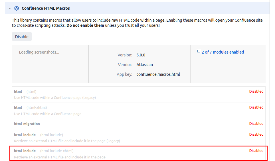 Atlassianμ Confluenceλ₯Ό μ€μΉν΄λ³΄μλ©΄ μμκ² μ§λ§ κΈ°λ³Έμ μΌλ‘ HTML macros κΈ°λ₯μ λν΄ κΈ°λ³Έμ μΌλ‘ "λΉνμ±ν"λ μνλ‘ μ μ§λμ΄ μμ΅λλ€. νμ§λ§ λ΄λΆμ μΌλ‘ μ μ μ¬μ©νκΈ° μν΄ νμ±νν΄λκ³ κ³μ μ μ§μμΌλλ€λ©΄ μ΄λ₯Ό μ μ©νμ¬ μΉ¨ν΄μ¬κ³ κ° λ°μν κ°λ₯μ±μ΄ μ‘΄μ¬ν©λλ€.