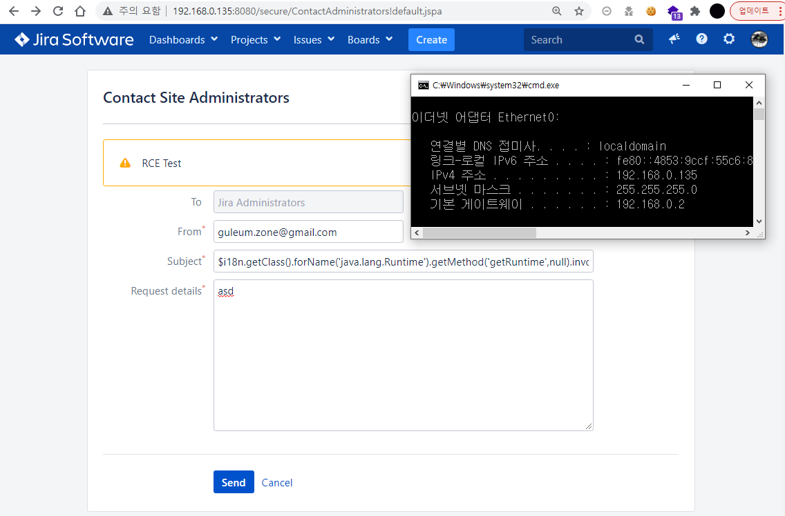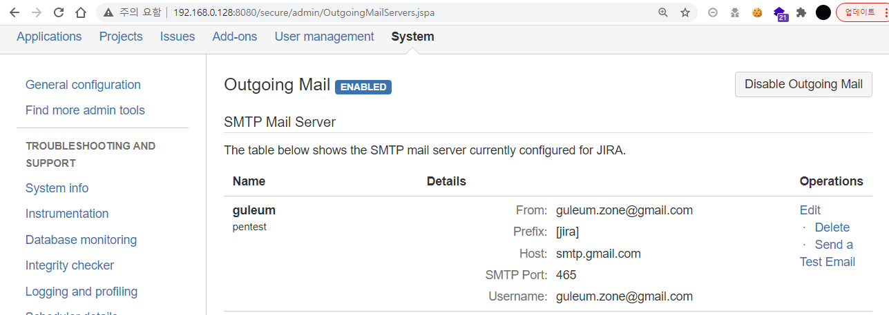 곡격 ν¬μΈνΈλ 첫λ²μ§Έλ‘ JIRAμλ²μ SMTP ꡬμ±μ΄ λμ΄ μκ³ "bulk email send(λμ©λ λ©μΌ 보λ΄κΈ°)" λλ "Contact Admin"μ΄ νμ±νλμ΄ μμ΄μΌ ν©λλ€.