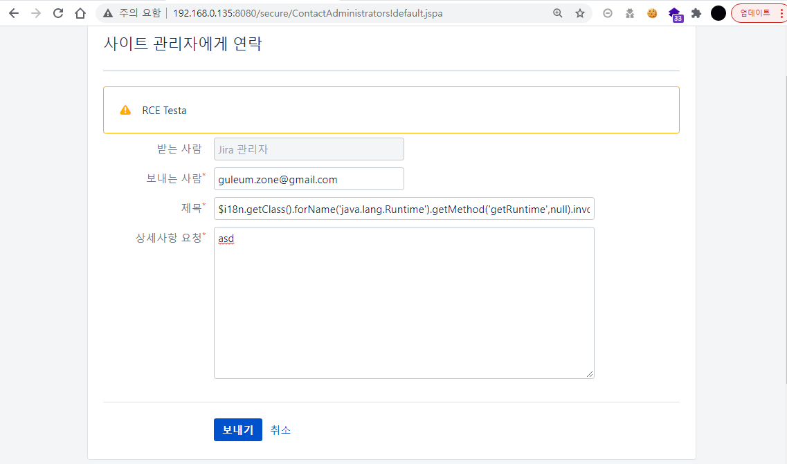 Exploit νκΈ° μν΄ μ¬μ μ λ‘κ·ΈμΈ μΈμ¦μ κ±°μΉκ±°λ(bulk email send) λ‘κ·ΈμΈ μΈμ¦ μμ΄(Contact Admin) κ΄λ¦¬μμκ² μ°λ½ν μ μλ μ΅μ (κΈ°λ³Έκ°: λΉνμ±ν)μ μ¬μ©νκ³ μλ κ²½μ°μ Server Template Injectionμ΄ μλν μ μμ΅λλ€.