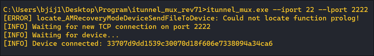 ์๋์ฐ ํ๊ฒฝ์์ itunnel์ ์ฌ์ฉํ๋ค๋ฉด ๋ฆฌ๋ ์ค์์๋ “iproxy”๋ฅผ ์ฌ์ฉํฉ๋๋ค. ํ์ง๋ง ํ์ฌ ํจํค์ง๊ฐ ๋ซํ๊ธฐ ๋๋ฌธ์ apt install iproxy ํ ๊ฒฝ์ฐ ์กด์ฌํ์ง ์๋๋ค๊ณ ๋ํ๋๋ค.