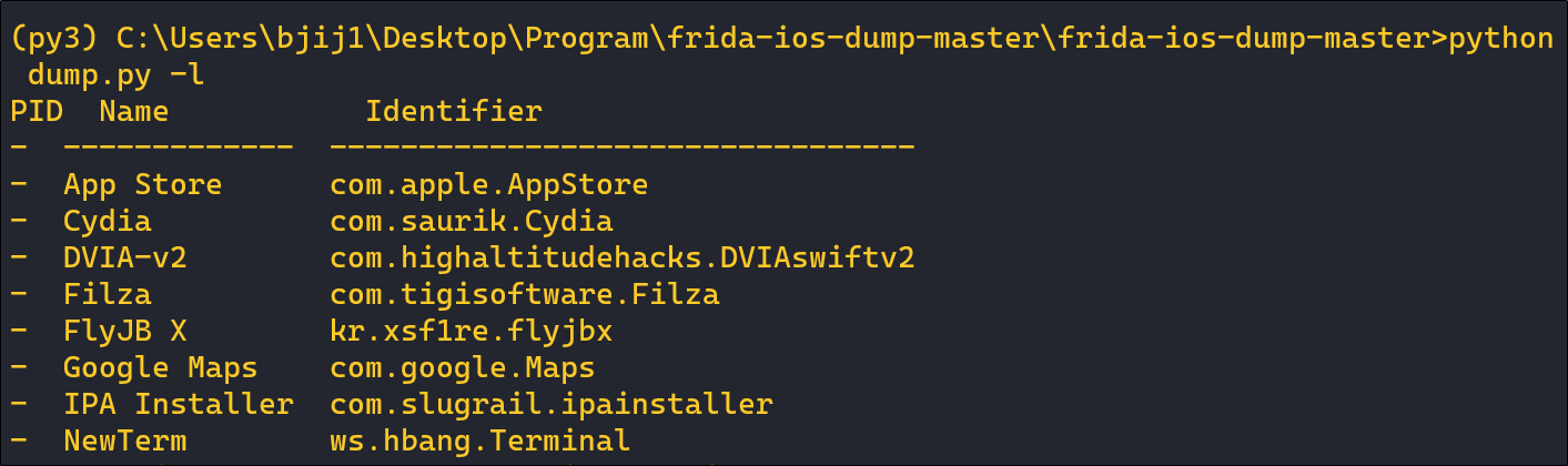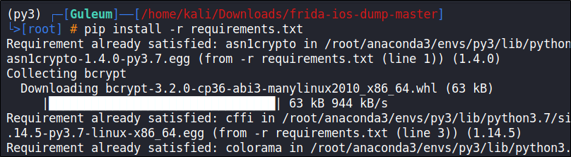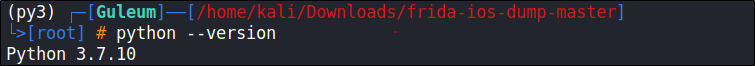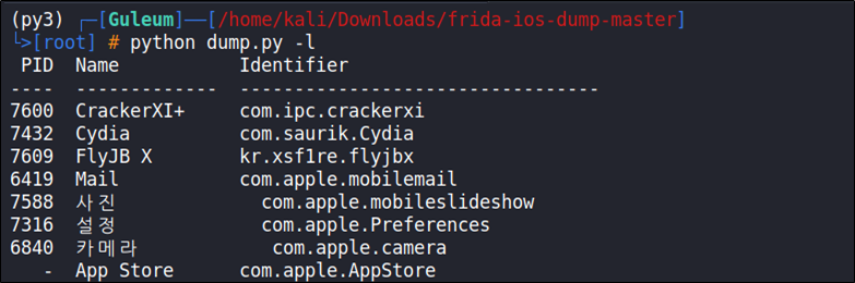 frida-ios-dump ํ์ผ ๋ด๋ถ์ ์กด์ฌํ๋ dump.py ํ์ผ์ ํ์ด์ฌ 3.x ๋ฒ์ ์์ ๋์ํฉ๋๋ค. Kali Linux์๋ python2.x ๊ณผ 3.x ๋ฒ์ ์ด ๊ณต์กดํ๋ฏ๋ก ๋ช ๋ น์ด ์คํ ์ python3๋ก ๋ช ์ํ์ฌ ์คํํ๊ฑฐ๋ Linux์ฉ anaconda ํ๊ฒฝ์ ๊ตฌ์ถํ์ฌ ์ฌ์ฉํ์๋ฉด ๋ฉ๋๋ค.