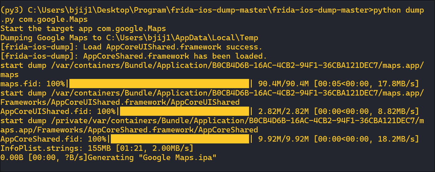 ๋ณตํธํ ์์ ์ด ๋ชจ๋ ์๋ฃ๋๋ฉด ์์ฒ๋ผ ์ ์ผ ํ๋จ ์ฝ์์ "Generating "Google Maps.ipa" ๋ผ๋ ๋ฌธ๊ตฌ๊ฐ ์ถ๋ ฅ๋ฉ๋๋ค.