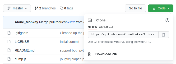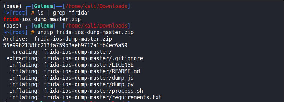 ์๋์ฐ ํ๊ฒฝ์์ ์งํํ ๊ฒ์ฒ๋ผ frida-ios-dump ํ์ด์ง์์ ๋ฆฌ๋ ์ค ํ๊ฒฝ์ผ๋ก Clone ํ์ฌ ๋ค์ด๋ก๋ํด์ฃผ์๋ฉด ๋ฉ๋๋ค.