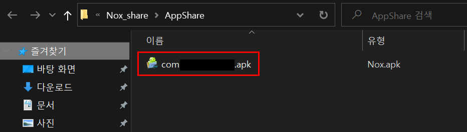 ์์ ๊ฒฝ๋ก๋ก ์ด๋ํ๋ฉด ๋ฐฑ์ ๋ ์ฑ์ด ์กด์ฌํฉ๋๋ค. ์ฒ์ ์ฌ์ฉํ์๋ ๋ถ๋ค์ ์กฐ๊ธ ํท๊ฐ๋ฆฌ์ค์๋ ์์ต๋๋ค. NOX ์๋ฎฌ๋ ์ดํฐ๊ฐ ํ์ผ ๋งค๋์ ์์ ์ ํ๋ ์ฑ์ ๋ณต์ฌ ๋๋ ์ด๋์ Ctl + C > Ctl + V ๊ฐ ์๋ ํ ๋ฒ์ Ctl + C/V ๊ฐ ์ด๋ฃจ์ด์ง๋๋ค. ๋ณ๋ค๋ฅธ ๊ฑฐ ์์ด ๋ฐฑ์ ๋ ์ฑ์ ์ข์ธก์ ์ ํ ํ "๋ก์ปฌ PC์ ๊ณต์ ๋๋ ๋๋ ํ ๋ฆฌ ๊ฒฝ๋ก๋ก ์ด๋ํด์ฃผ์๋ฉด ๋ฉ๋๋ค.(mnt/shared/App)