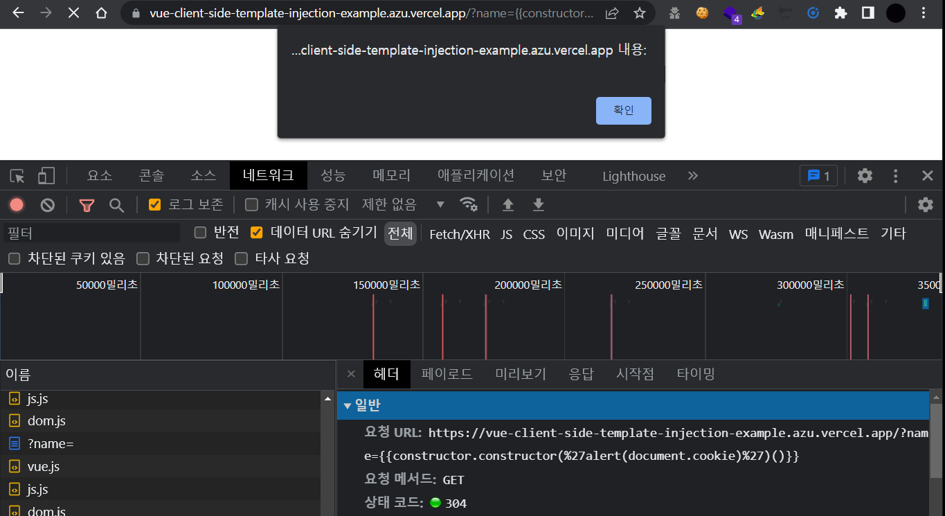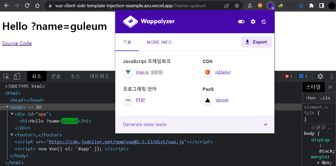 μΆκ°μ μΌλ‘ Vuejs λ² μ΄μ€μ Template Injectionμ μ°Ύκ³ μ ν κ²½μ° λλ ν°λΈ μ€ νλμΈ "v-html" λΆλΆμ 체ν¬ν΄λ³΄λ κ²λ μ’μ΅λλ€.