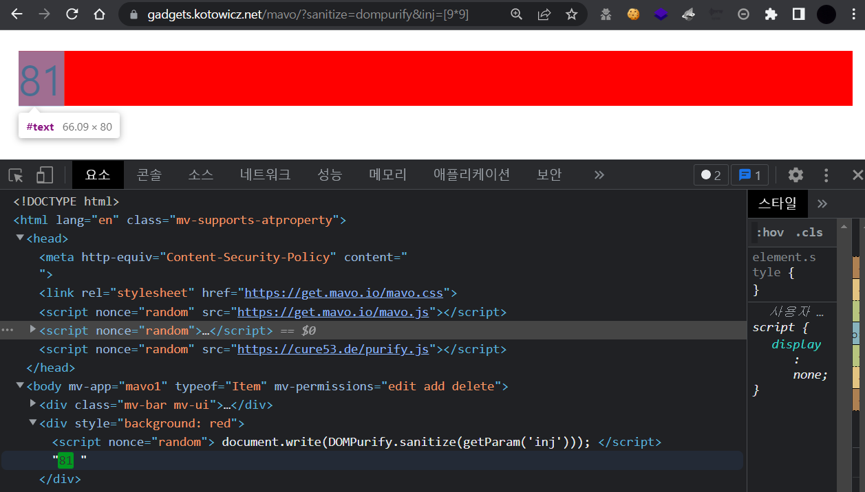 ννμμ ν΅ν μλ°μ€ν¬λ¦½νΈ ꡬ문μ μ€νμν¬ μ μμ΅λλ€. μ΄ λ°μλ Mavoλ νΉμ μ HTML μμ±μ νμ©ν΄μ XSSλ₯Ό λ°μμν¬ μ μμ΅λλ€.