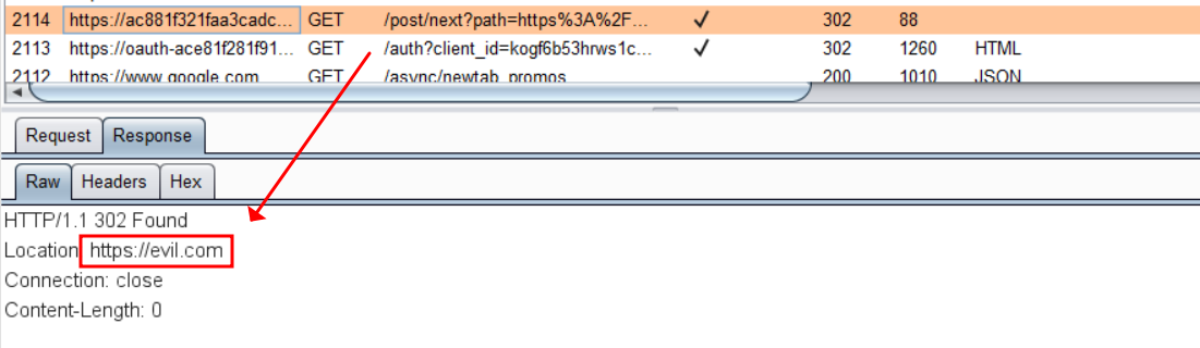 첫 λ²μ§Έλ‘ μμλ‘ μ§μ λλ λλ€ ν ν° "state" λ³μκ° μ‘΄μ¬νμ§ μμ CSRF νμμ 곡격μ λ ΈμΆλ κ°λ₯μ±μ΄ μ‘΄μ¬ν©λλ€. λν redirect_uri μ μ§μ λ λμ μμ²μ μ ν¨μ± κ²μ¬λ₯Ό μ λλ‘ νμ§ μμ κ²½μ° λμΌνκ² CSRFννμ 곡격μ μ μ©λ μ μμ΅λλ€.