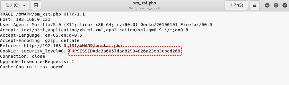 TRACE ๋ฉ์๋๋ก ์ธํด ๋ค์ด๋ก๋๋ sm_xst.php ํ์ผ์ ์ด์ด๋ณด๋ฉด ์์ฒญ ๋จ๊ณ์ ์กด์ฌํ๋ ๋ชจ๋ ๊ฐ๋ค์ด ๊ทธ๋๋ก ์ ์ฅ๋์ด ๋ฐ์ฌ๋ ๊ฒ์ ํ์ธํ ์ ์์ต๋๋ค.