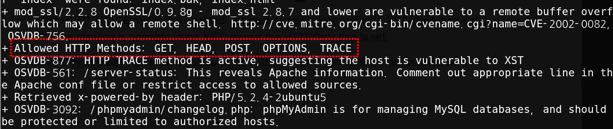 nikto๋ผ๋ ์น์๋ฒ ์ค์บ๋ ๋๊ตฌ๋ฅผ ํตํด ํ์ฉํ๊ณ ์๋ ๋ฉ์๋ ํญ๋ชฉ์ ํ์ธํ ์ ์์ต๋๋ค. ์ด์ธ์๋ ๋ค์ํ ๋ฌธ์ ์ ์ด ์กด์ฌํ ๊ฒฝ์ฐ ํจ๊ป ์ถ๋ ฅ๋ฉ๋๋ค.