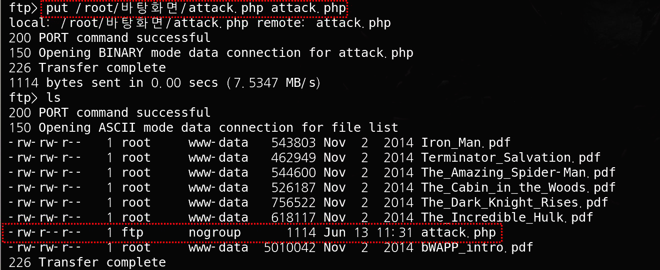 FTPμ μ½κΈ°/μ°κΈ° κΆνμ΄ νμ©λ μ΅λͺ μλΉμ€μ μ κ·Όμ΄ κ°λ₯νλ€λ κ°μ νμ λ‘κ·ΈμΈνμ¬ " put " λͺ λ Ήμ ν΅ν΄ Payloadλ₯Ό μ λ‘λνκ² μ΅λλ€.