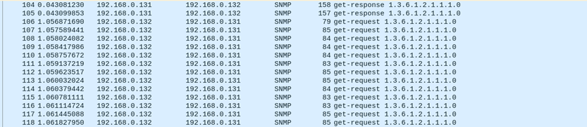 get-request๋ฅผ ํตํด ๋ฌด์์๋ก ์ ์ ์๋๋ฅผ ํ๊ณ ์์ผ๋ฉฐ get-response์ ์๋ต ํจํท์ ํ์ธํด๋ณด๋ฉด ๋์ ์์คํ ์์ SNMP์ Commnunity String ๊ฐ์ ๊ธฐ๋ณธ private / privacy๋ฅผ ์ฌ์ฉํ๊ณ ์๋ ๊ฒ์ ํ์ธํ ์ ์์ต๋๋ค.