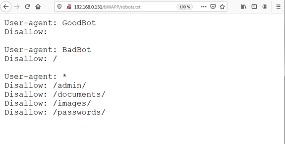 msf5 auxiliary(scanner/http/robots_txt) > set RHOSTS 192.168.0.131