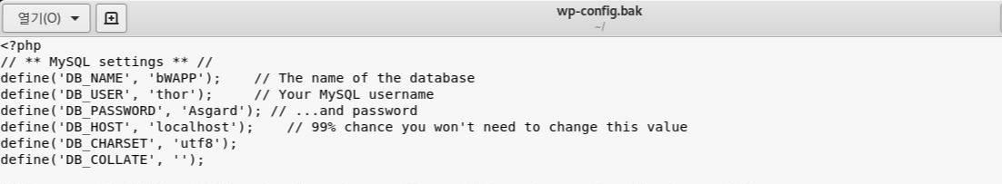 wp-config.bakμ΄λΌλ νμΌ λ΄λΆλ₯Ό νμΈν΄ λ³Έ κ²°κ³Ό λμ μλΉμ€μ λν DBμ λ³΄κ° λ ΈμΆλμ΄ μμ΅λλ€.