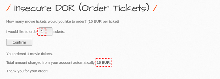 ํด๋ผ์ด์ธํธ๊ฐ ๋ณด๋ธ ์์ฒญ์ ๊ทธ๋๋ก ์ ๋ขฐํ๊ณ ์์ผ๋ ticket_price=15๋ผ๊ณ ์ ํ์๋ ๊ฐ์ " 1 " ๋ก ๋ณ๊ฒฝํด์ ๊ฐ์ 1๊ฐ ํฐ์ผ์ ๊ฐ์ธ 1์ ๋ก๋ก ์กฐ์ํ ์ ์์ต๋๋ค.