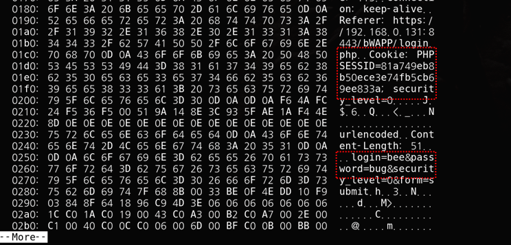 ํด๋น ๊ณต๊ฒฉ ์คํฌ๋ฆฝํธ ๋ด๋ถ๋ฅผ ํ์ธํด๋ณด๋ฉด ๊ธฐ๋ณธ์ ์ผ๋ก " 8443 " ํฌํธ๊ฐ ์ค์ ๋์ด ์๋ ๊ฒ์ ํ์ธํ ์ ์์ต๋๋ค. ์์ ๋ช ๋ น์ด๋ฅผ ํตํด ๊ฒฐ๊ณผ๋ฅผ ํ์ธํด ๋ณธ ๊ฒฐ๊ณผ ์ฌ์ฉ์์ ๋ก๊ทธ์ธ ์ ๋ณด์ธ ์ธ์ ๊ฐ๊ณผ ID์ PASSWORD๊น์ง ๋ชจ๋ OverFlow ๋์ด ๋ ธ์ถ๋๊ณ ์์ต๋๋ค.
