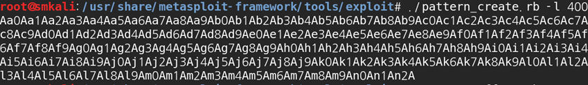 pattern_offset.rb : EIP์ ์์ธ ์ ํํ ๋ฒํผ ๊ธธ์ด ๊ณ์ฐ์ ์ํด ์ฌ์ฉ(EIP / SEH ์ฃผ์๋ฅผ ์์๋์ ๋ ์ฌ์ฉ)